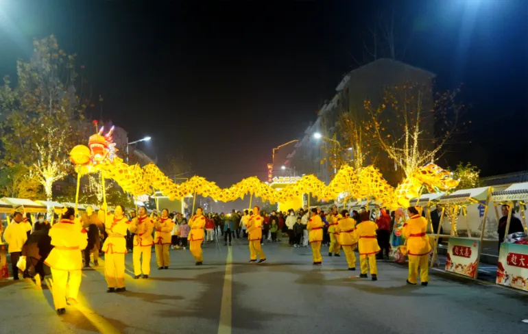 三条长龙如黑夜中的金色流星在街头舞动,中国非遗文化独特而绚丽,此次活动不仅丰富了城区群众及游客的精神文化生活,更是让人民群众感受到了非遗文化生生不息的艺术魅力,让中华传统文化在生活中熠熠生辉。
